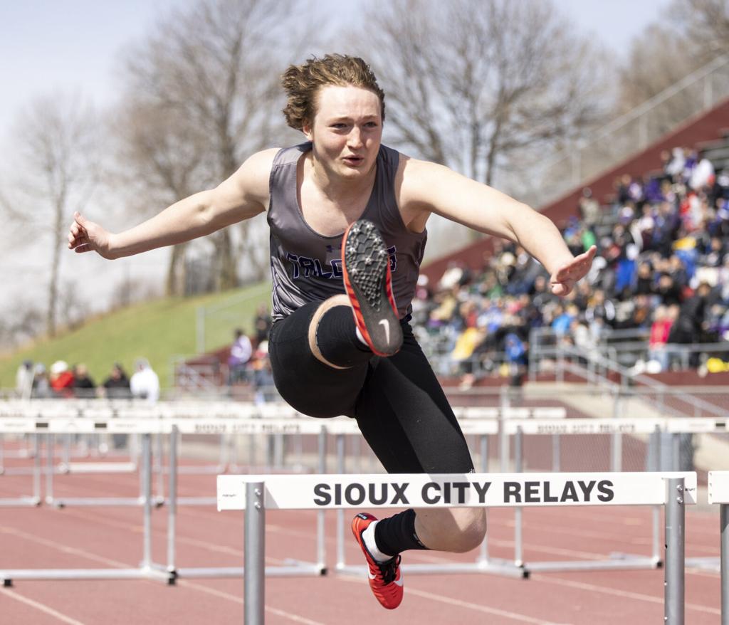 Feb 17 Fri. Annual Sioux City Relays track meet held at Elwood Olsen Stadium on the campus of Morningside College in Sioux City Iowa. Sioux City Relays Ryan Sadoski of Le Mars competes in the Boys 4x110 Meter Shuttle Hurdle Relay during the Sioux City Relays Saturday April 9 2022 at Elwood Olsen.