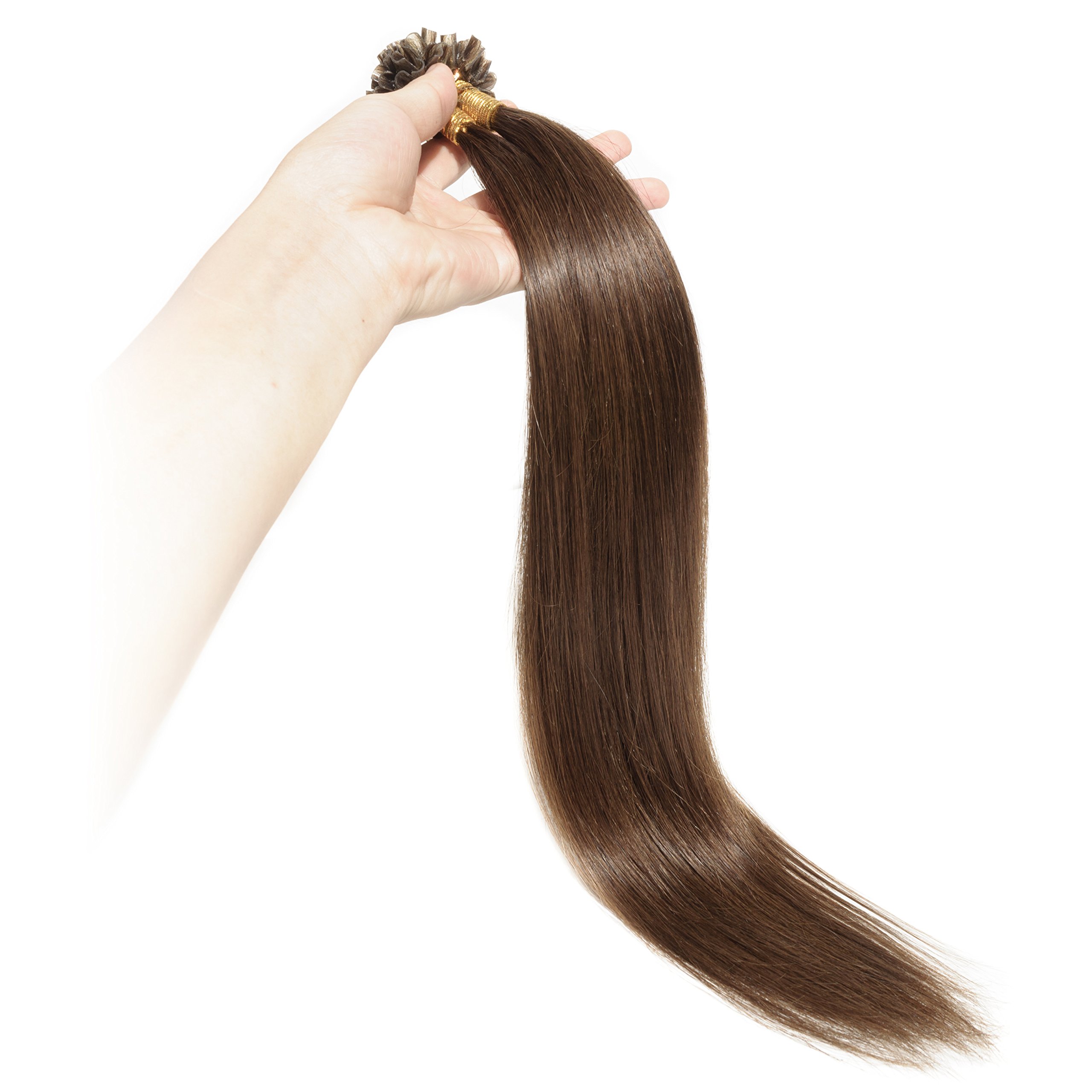 Hairro Pre Bonded Fusion Utip Hair Extensions 100 Human Hair Glue Stick U Tip Invisible Tipped Hair Piece Nail Tipped 100 Strands Keratin Stick Silky U Tip Hair 100 Strands 16 50g 12 Golden Brown